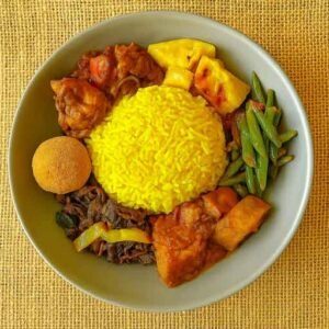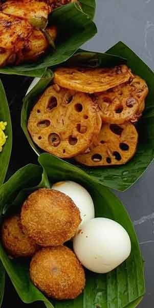 - Rice and curry with 40+ vegetable curries and 12 meat/seafood curries.